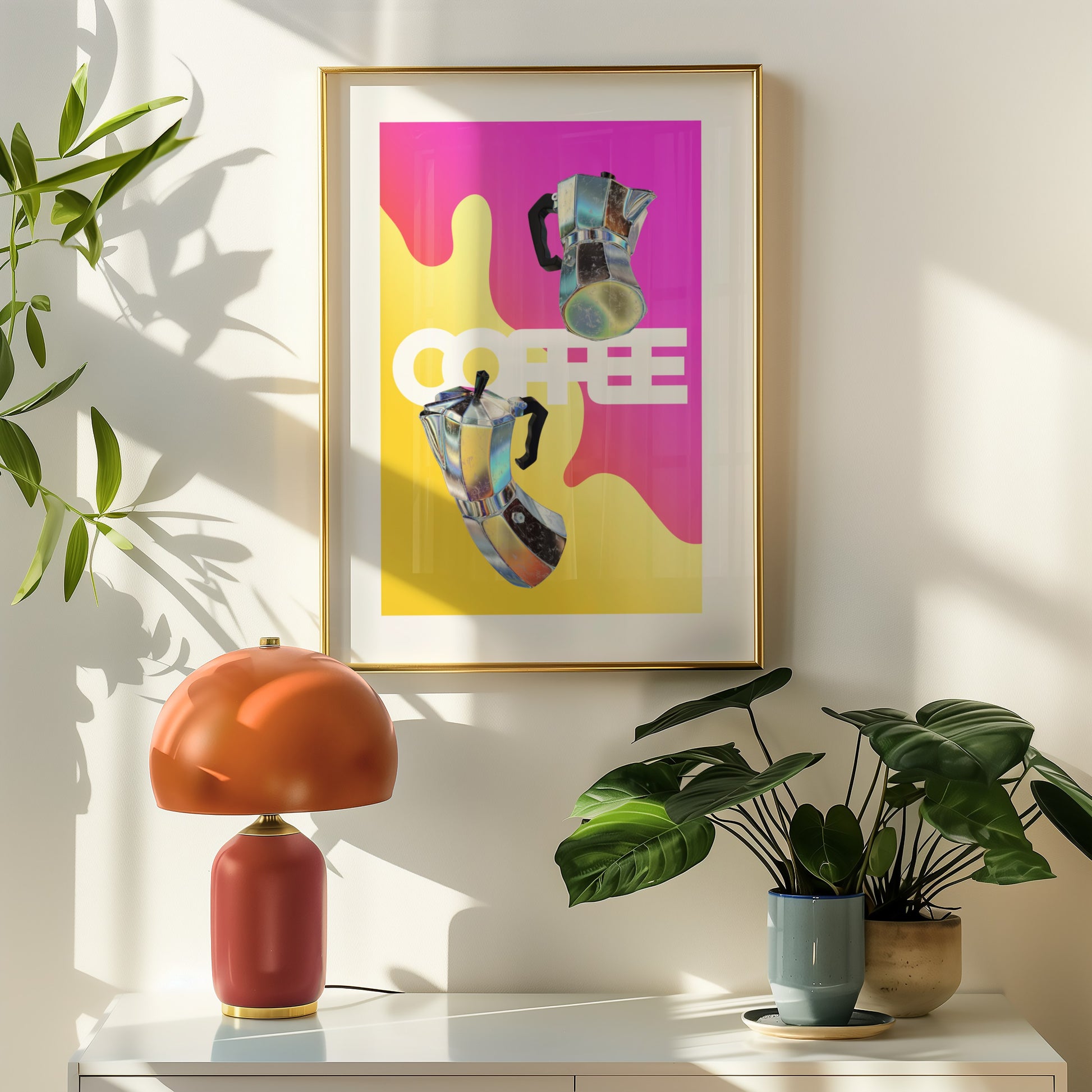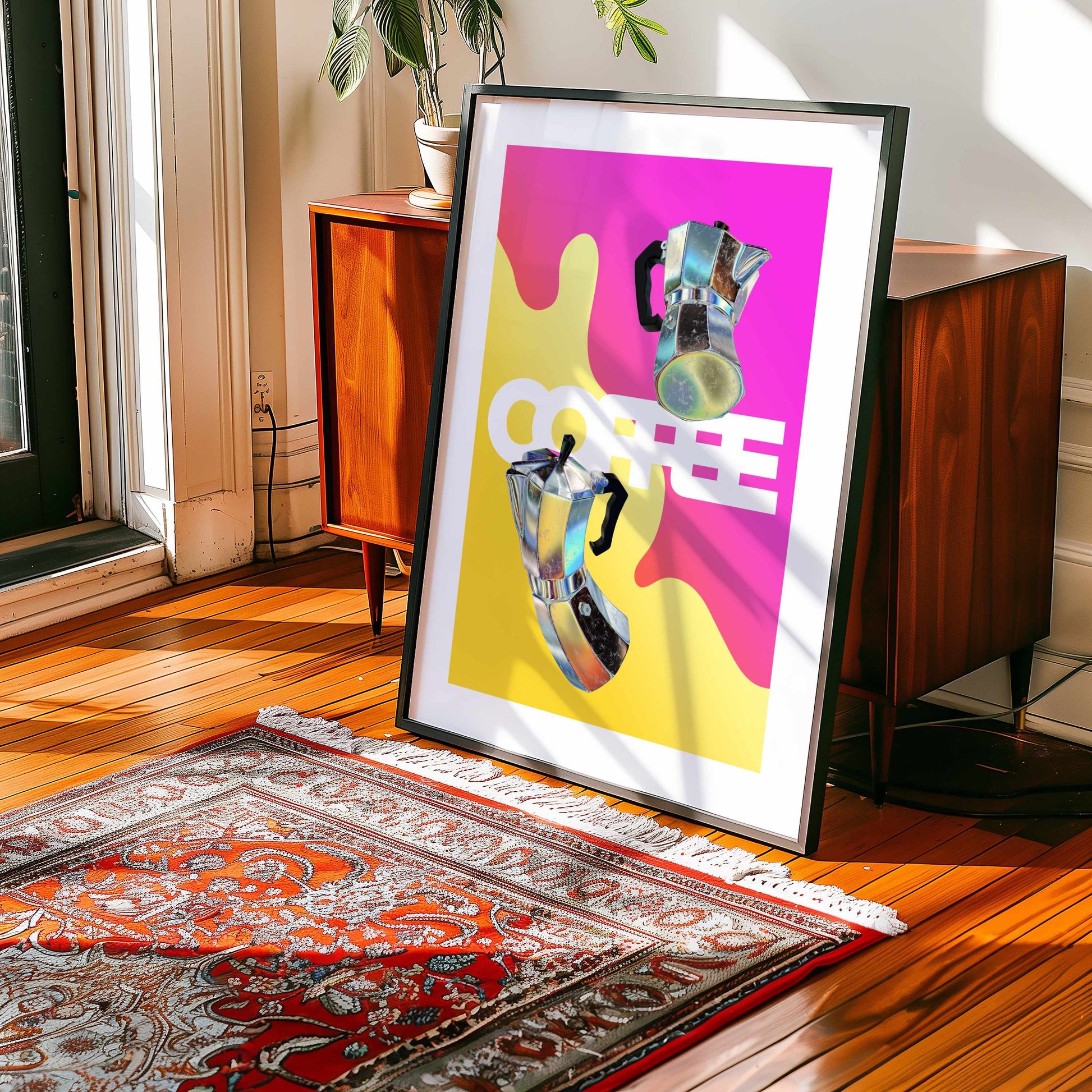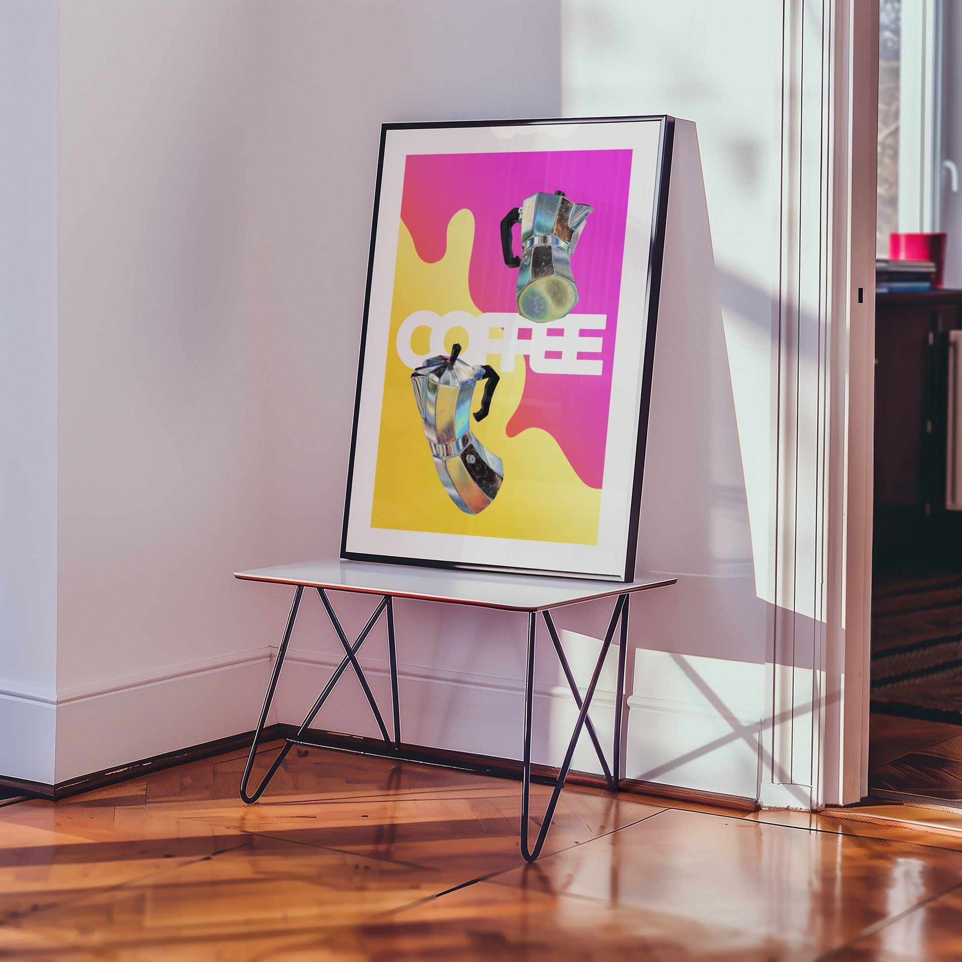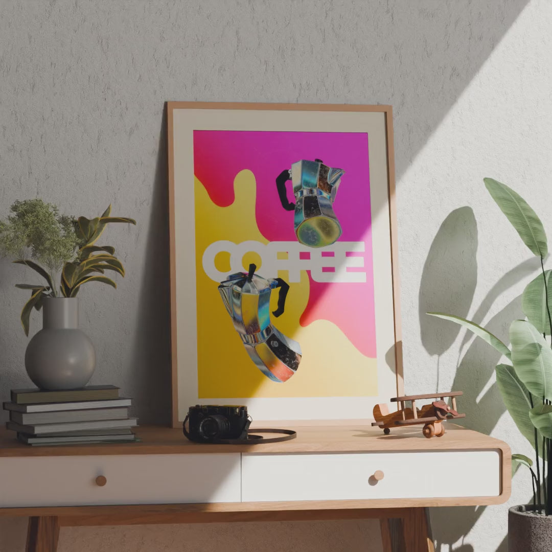 Le café, cette constante universelle qui transcende les heures et les lieux. Plus qu'une simple boisson, un rituel partagé, une passion sans frontière. Ce poster graphique capture l'essence vibrante de l'élixir noir dans un style résolument contemporain.