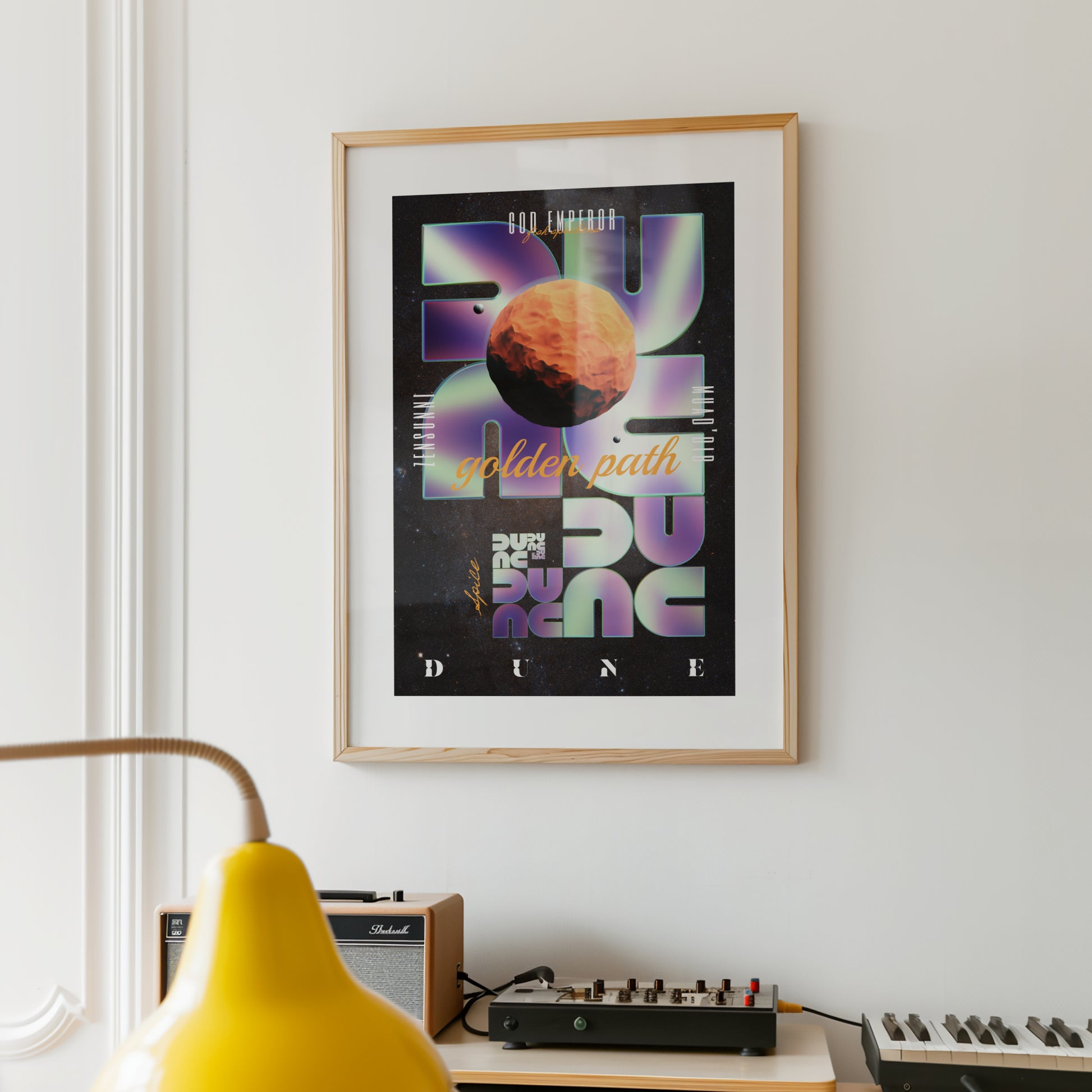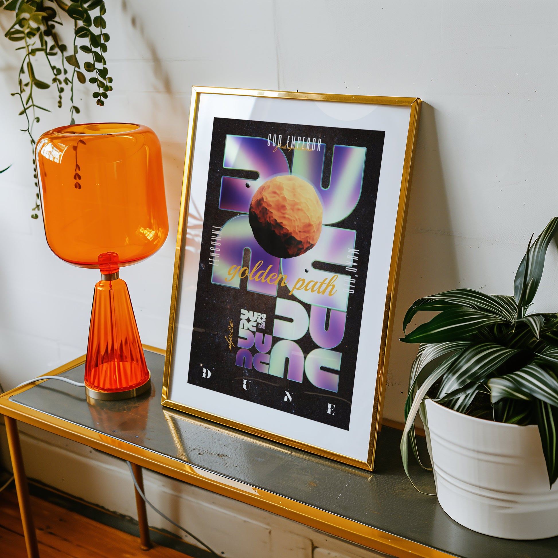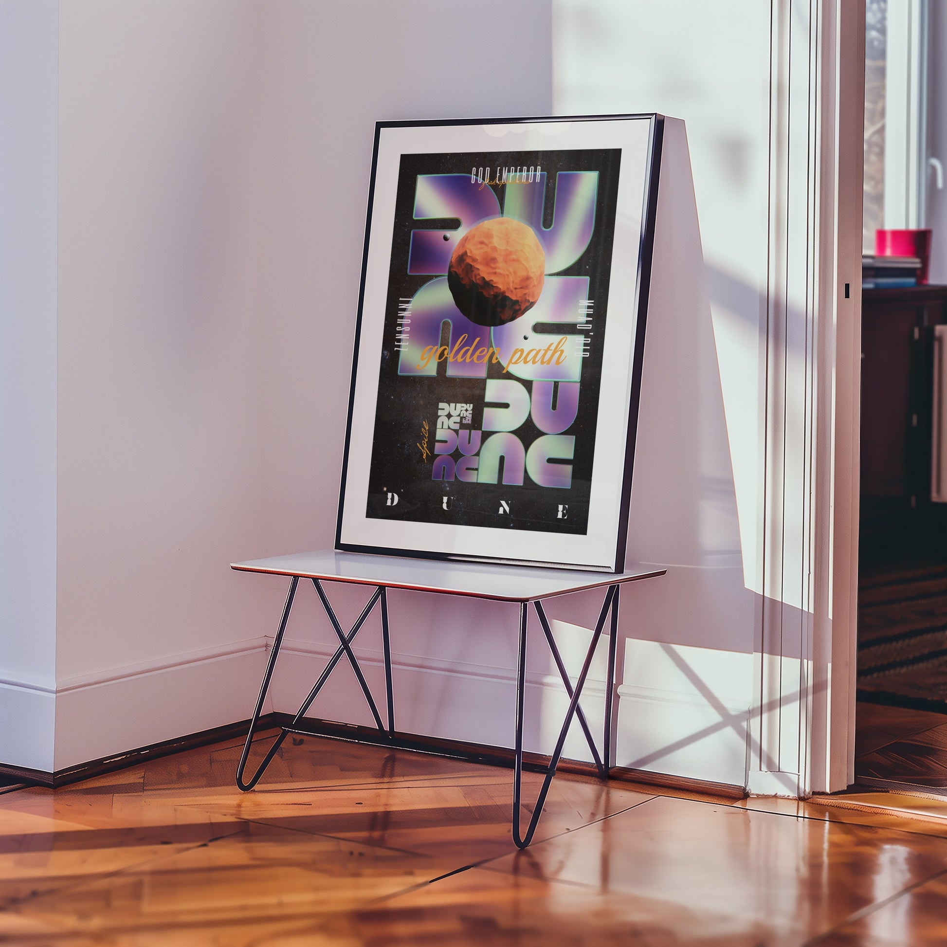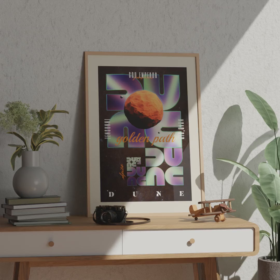 Laissez-vous guider par la vision prophétique de L'Empereur Dieu sur le Sentier d’Or. Cet artwork unique capture l’essence mystique de Dune. Un hommage visuel à l’œuvre de Frank Herbert saisi dans un design graphique fort et contemporain, pensé pour les passionnés de science-fiction et de cet univers légendaire, parmi lesquels je compte.