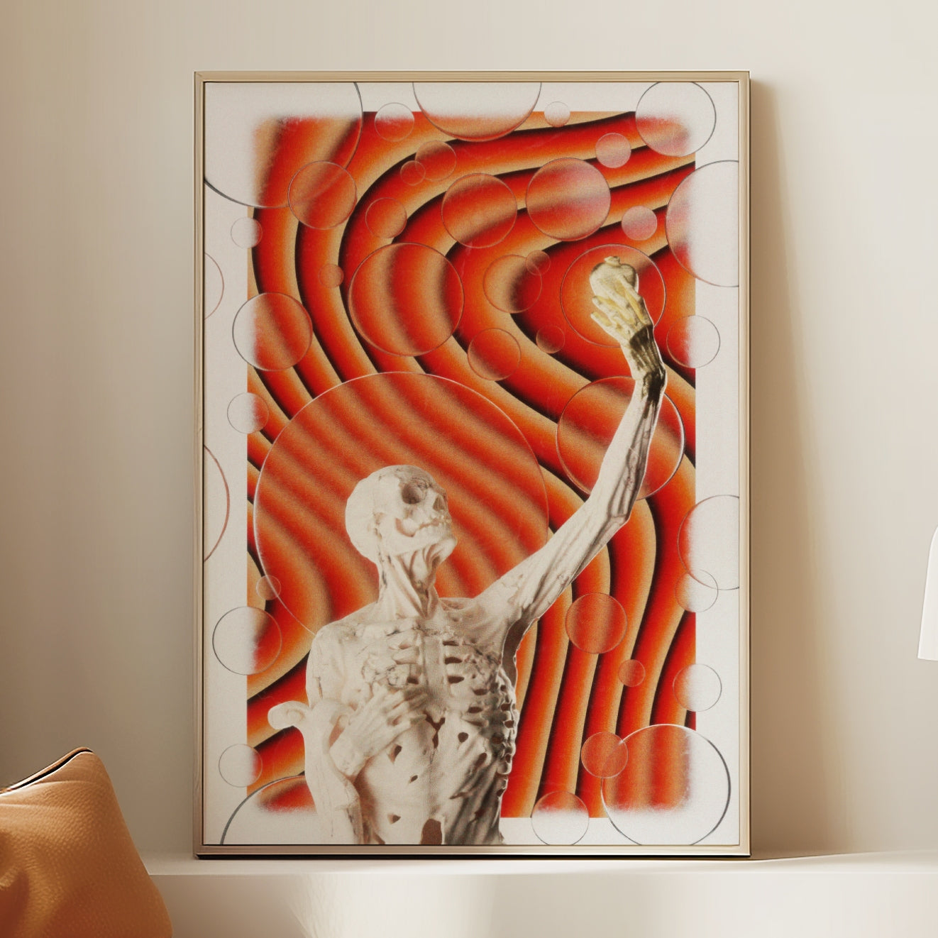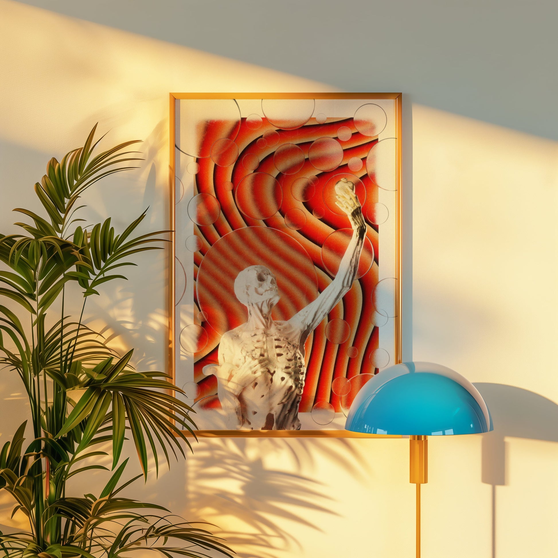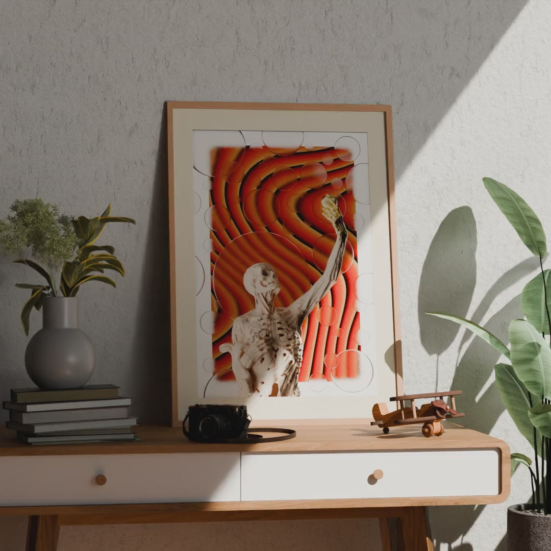 Une pièce contemporaine frappante qui allie symbolisme et simplicité. Une scène énigmatique jouant avec les thèmes de la tentation, de la mortalité et du désir, à travers une perspective moderne.