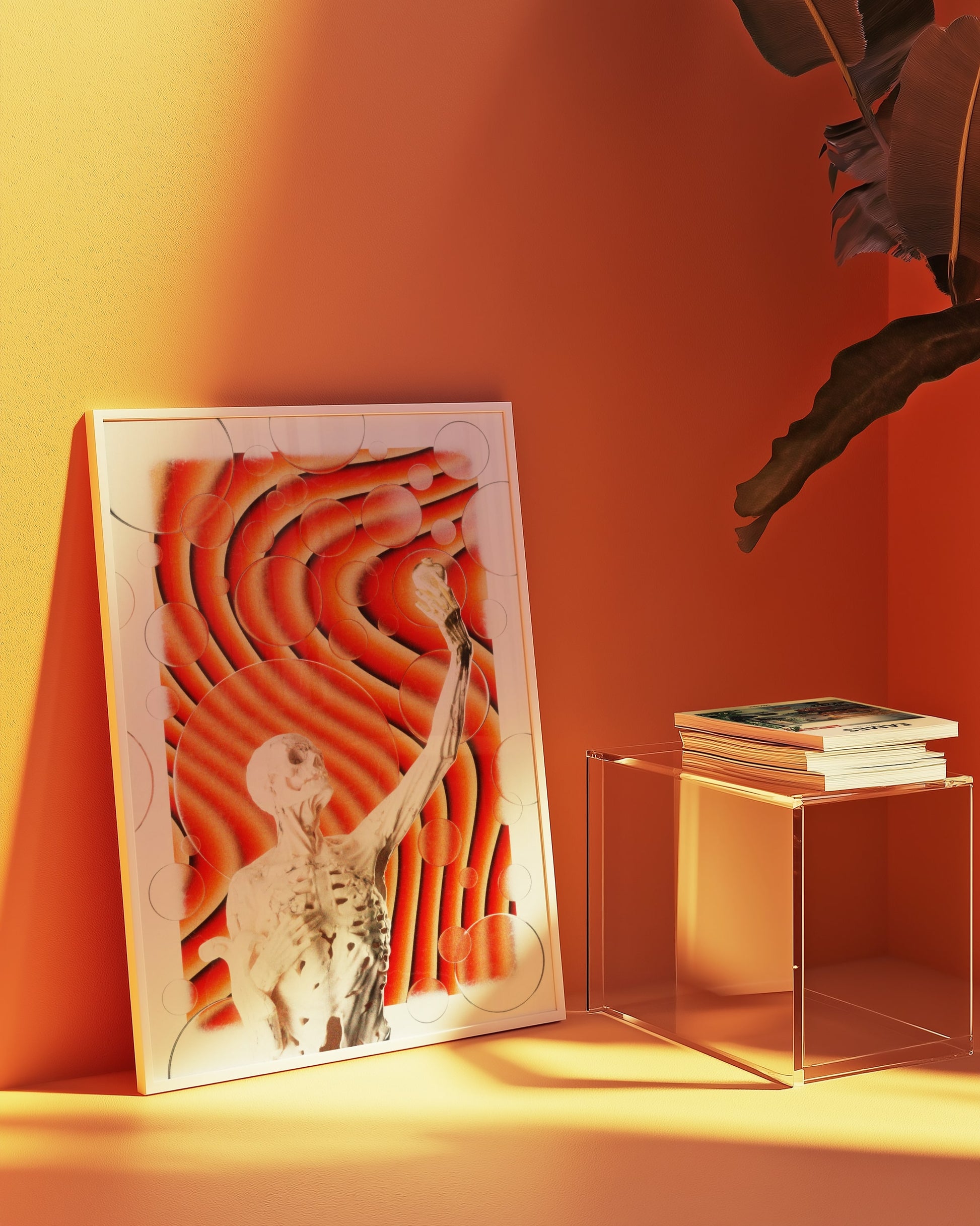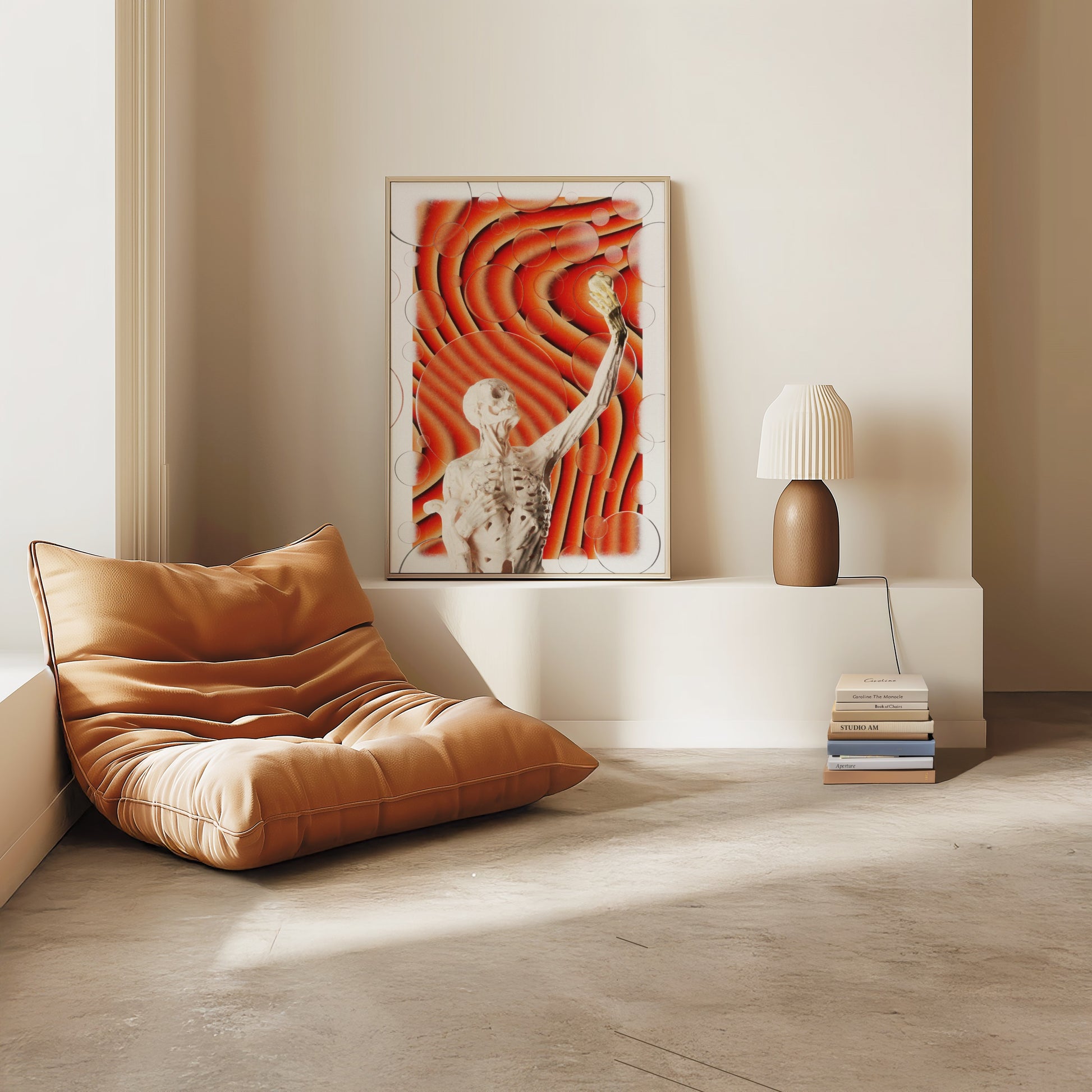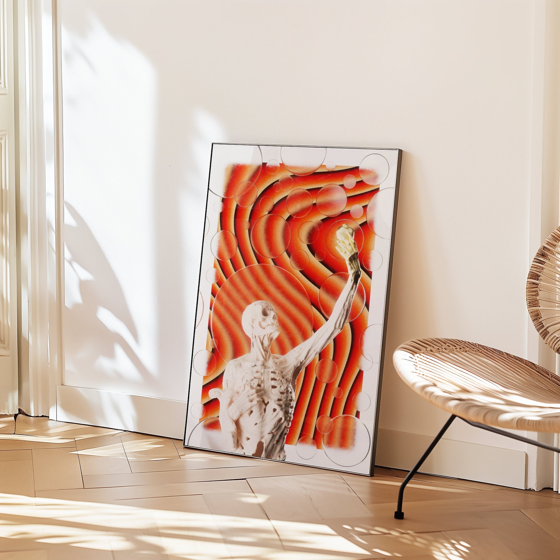 Une pièce contemporaine frappante qui allie symbolisme et simplicité. Une scène énigmatique jouant avec les thèmes de la tentation, de la mortalité et du désir, à travers une perspective moderne.
